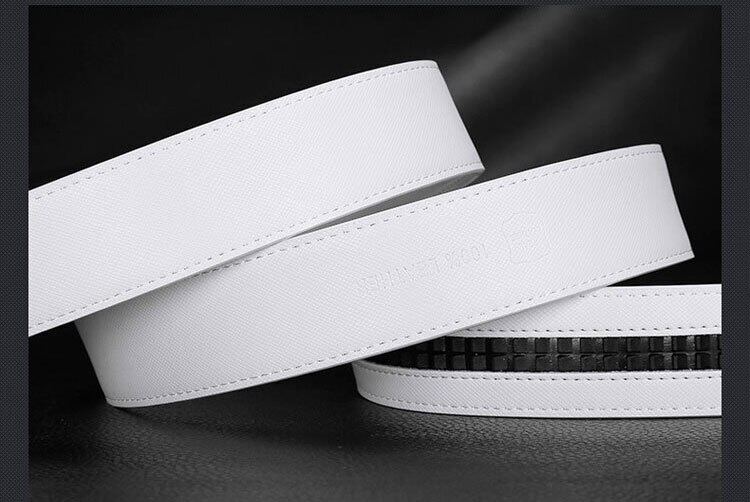 CEXIKA White Plus Size LONG Men Leather Belt 130 140 150 160cm Real Cow Original Genuine Leather Automatic Buckle Width Men Waist Straps for Jeans