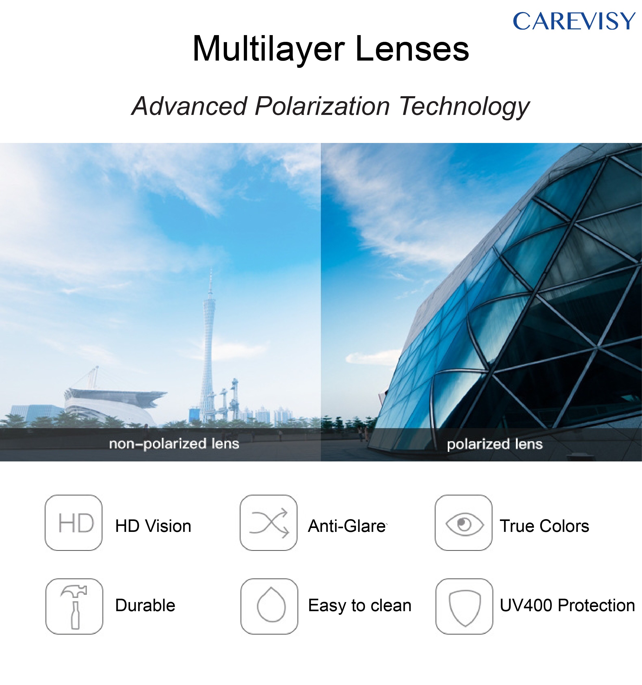 CAREVISY Fashion Polarized Sunglasses UV400 Protection Anti Glare Driving Fishing Sunglasses for Adults Men Women C6019