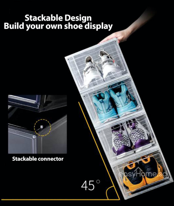 (Bundle Set) AJ Shoe Box / Storage Rack Shelf Organizer (Front Or Side Lid Opening)