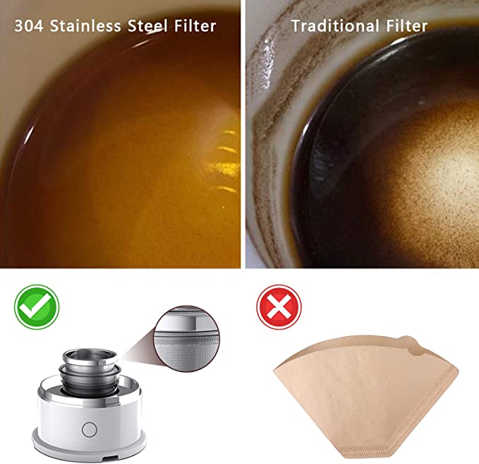 ☕【Cost Saving】This Drip Coffee Maker uses a coffee filter made of 304 stainless steel, which can be reused. It makes the filtration more delicate and the brewing is more uniform, and its quality is better than plastic, ceramic or glass coffee filters, so you can save money on buying paper coffee filters.