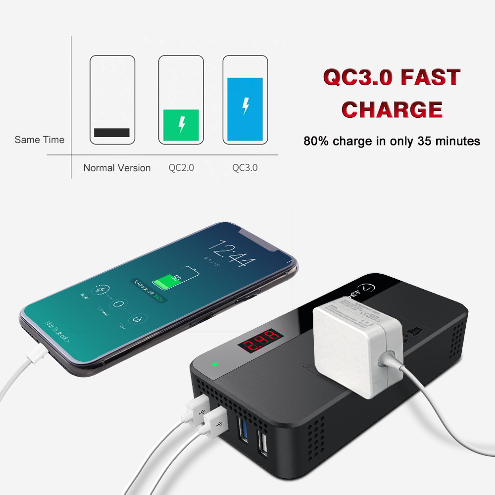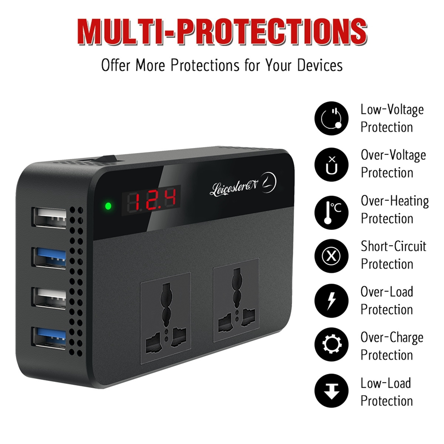 【Upgraded】LST 200W 220V Car Power Inverter Original DC 12V to 220V AC Car Converter 2 AC Outlets 4 USB Ports Adapter(2*QC3.0 Fast Charging Port) DC to AC Inverter with Digital Display