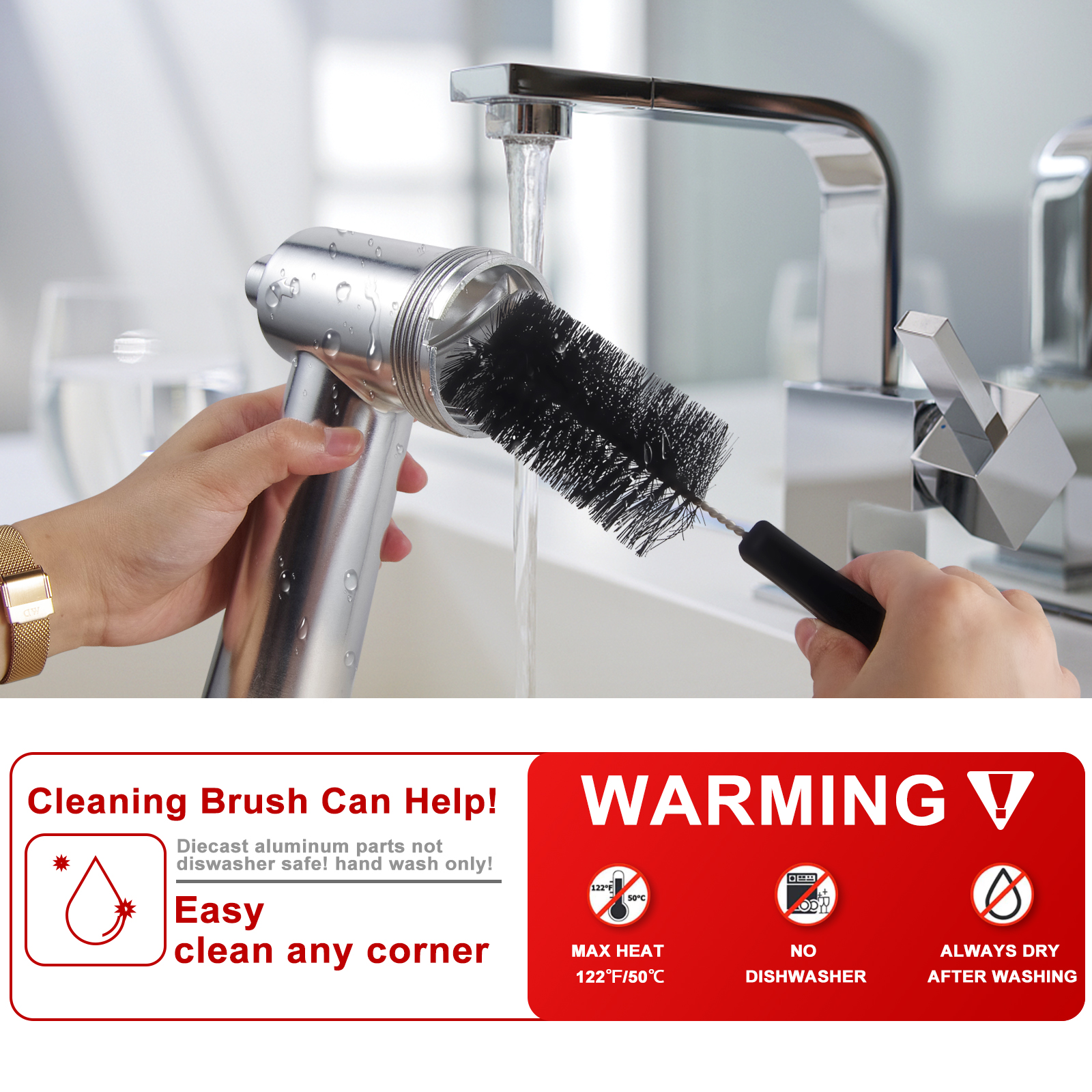 5.For Diecast aluminum parts Not Dishwasher Safe! Handwash Only! Easy to attach, detach and clean