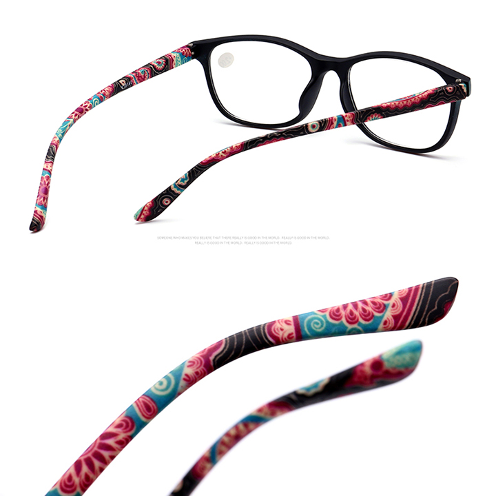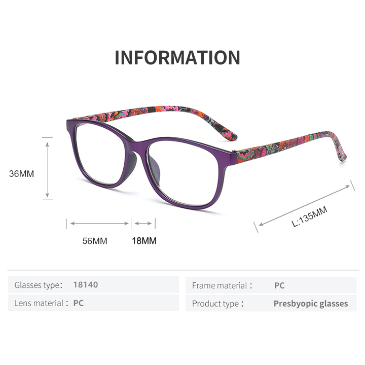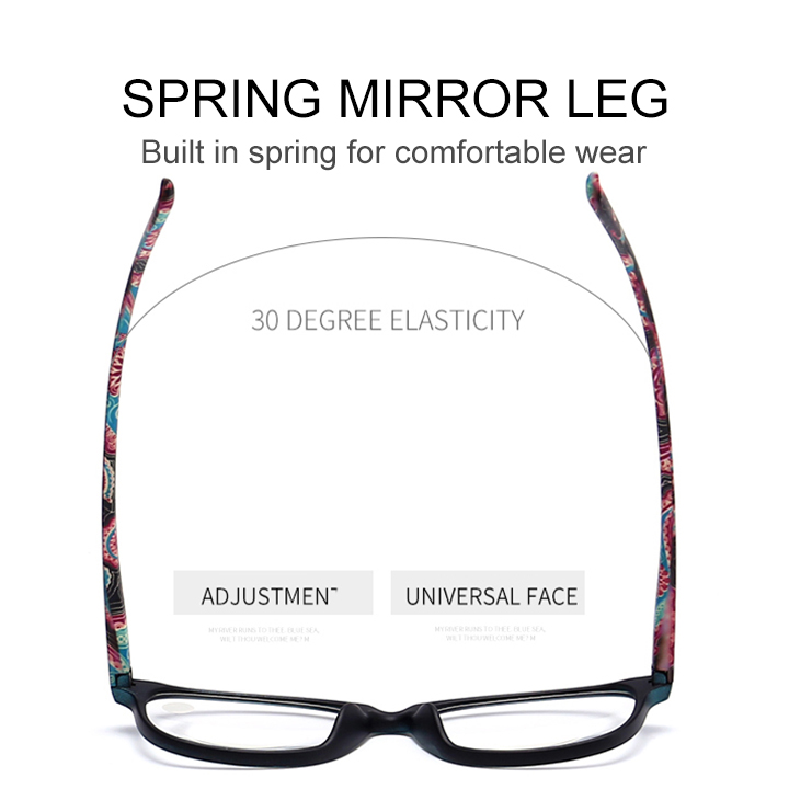 Reading glasses made of PC frame, PC lens. Square frame, integrated frame, comfortable nose pads, spring hinges.HD Vision and UV400 can restore true colors and protect eyes. The ideal gift for parents and friends. Suitable for reading. The stylish and elegant design is youthful and shows a unique taste.