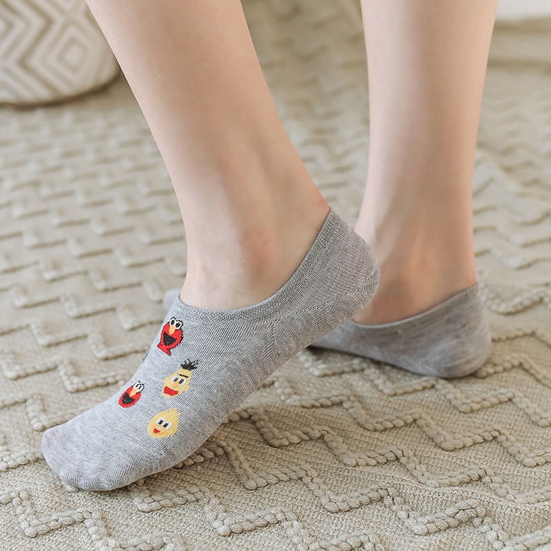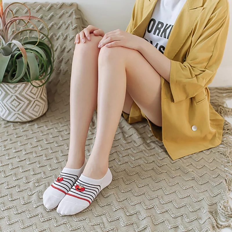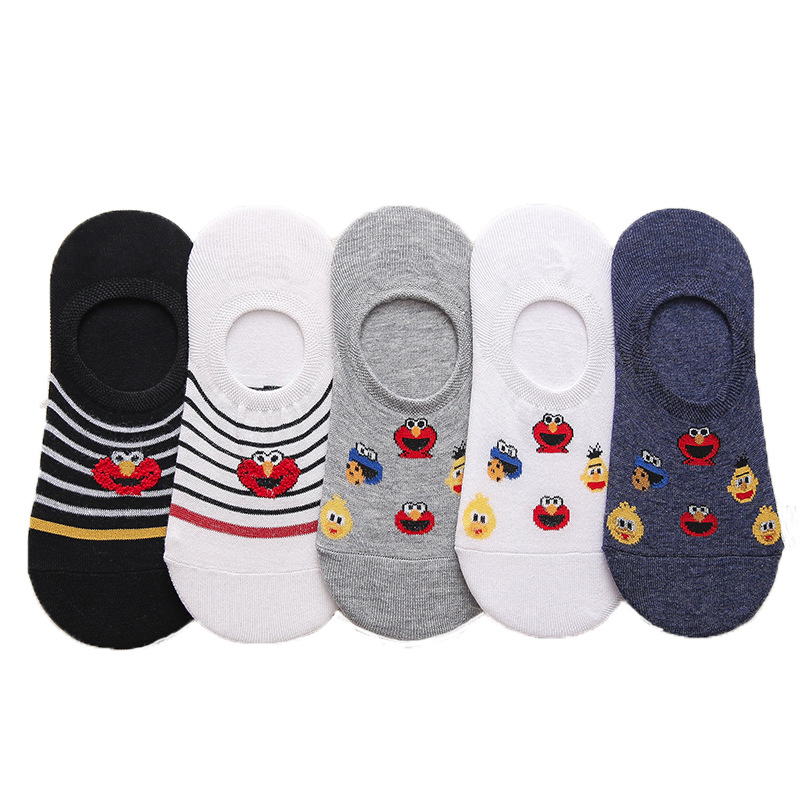 (SG Seller) 5 Pairs Women Socks Cute Sesame Street Anime Socks cotton Cartoon Pattern Summer invisible Socks women Casual Lady Happy Socks for girls