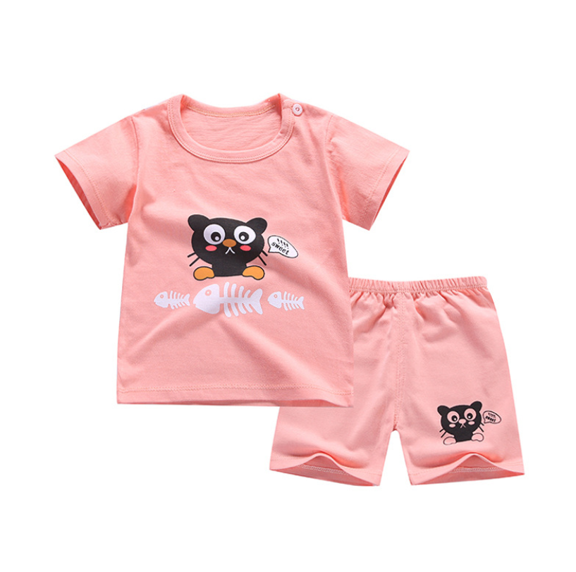 QINN Toddler Baby Kids Boys Girls 100% Cotton Clothing Sets Cute Print T-shirts Tops + Shorts Pants Trousers Home Wear Children Boy Girl Pajamas Clothes Set For 0-7 Years