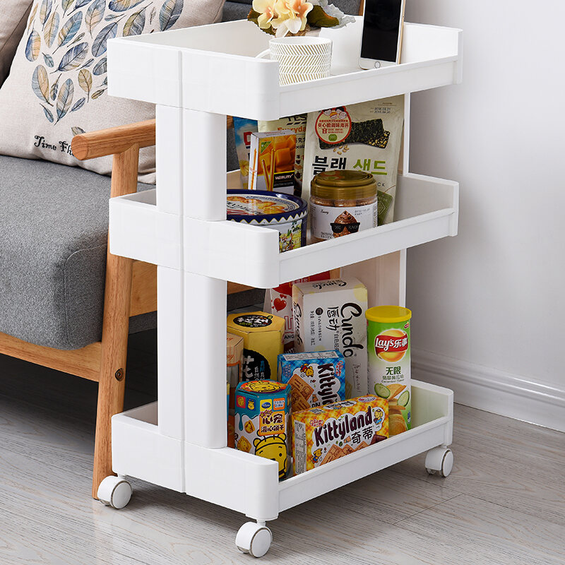 Movable Bookshelf Trolley with Wheels Storage Rack Floor Small Bedroom Storage Rack Living Room Multi-Layer Storage Rack