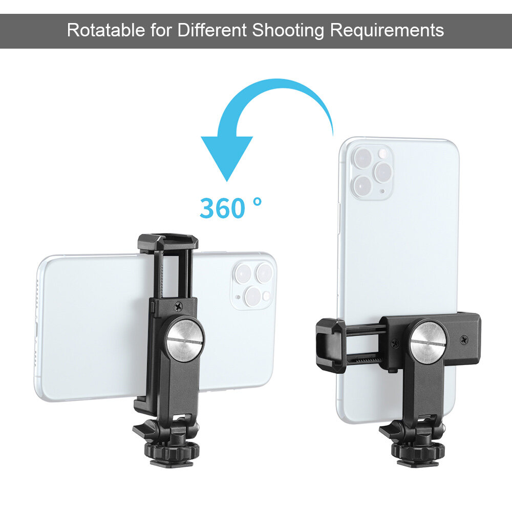 Features: 360 degree rotatable phone clamp for horizontal and vertical shooting, forwards and backwards tilt adjusting is also available.