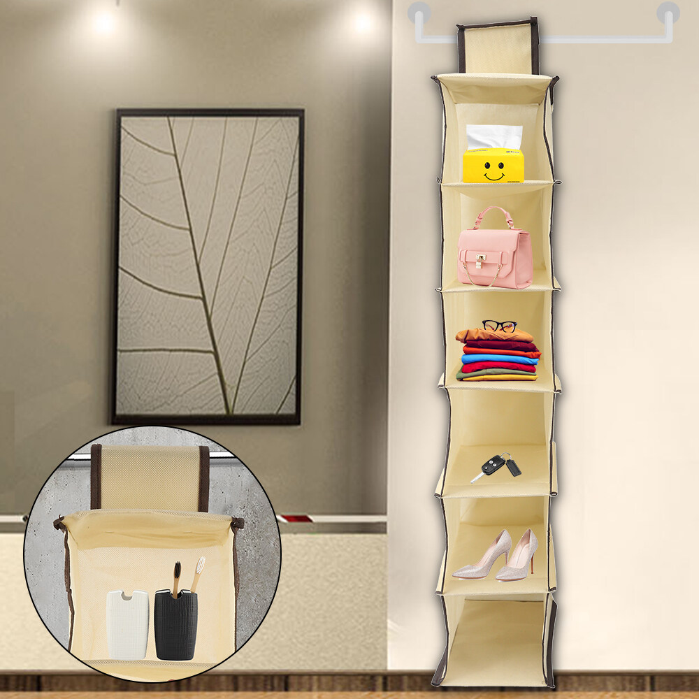 Storage Organiser 6 Section Hanging Storage Wardrobe Shoe Shelves Organiser Fabric Cloth Garment Hanging Box