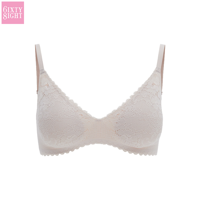 6IXTY8IGHT Solution Wireless Bralette Seamless Bra 3D Lace Overlay BR10777