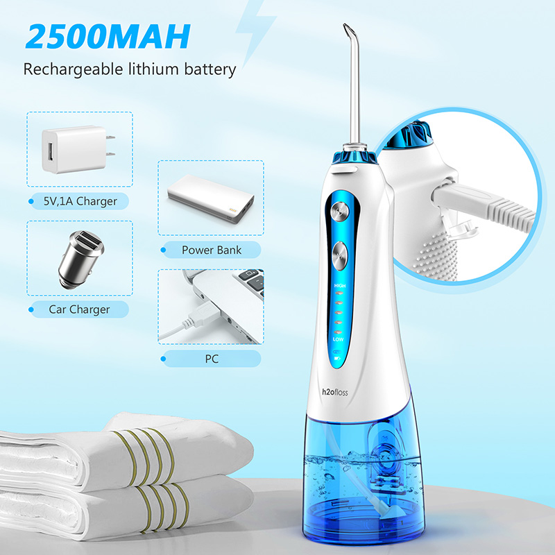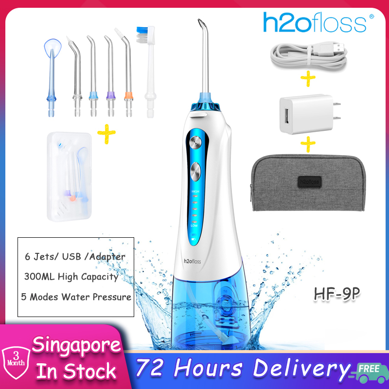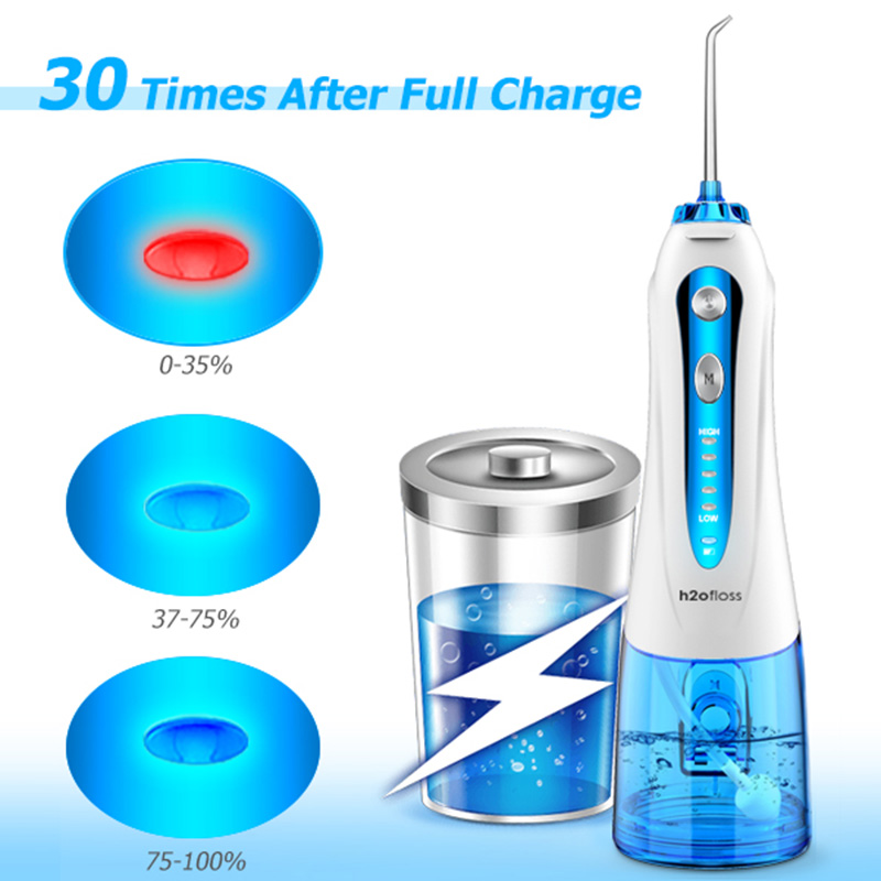 H2ofloss Cordless Water Flosser for Braces Bridges Hygiene, Waterproof Oral Dental Irrigator Water Pick Teeth Cleaner with 5 Modes 6 Jets 300ml Water Tank Rechargeable Electric Flosser for Travel