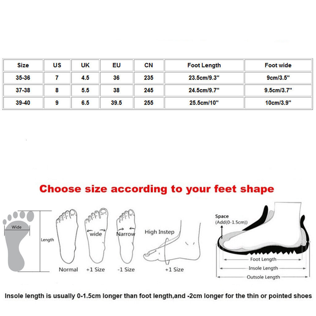 Size:35-36 US:7 UK:4.5 EU:36 CN:235 Foot Length :23.5cm/9.3" Foot wide :9cm/3.5"
