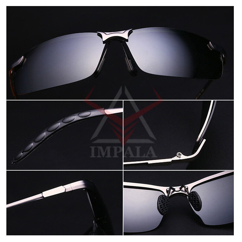 IMPALA PG036W Fashion Men Polarized Sunglasses Metal Frame Photochromic Lens Anti Glare UV Protective Eyeglasses Original Style Korean Sun Glasses UV400 HD Lens Change Color Itself