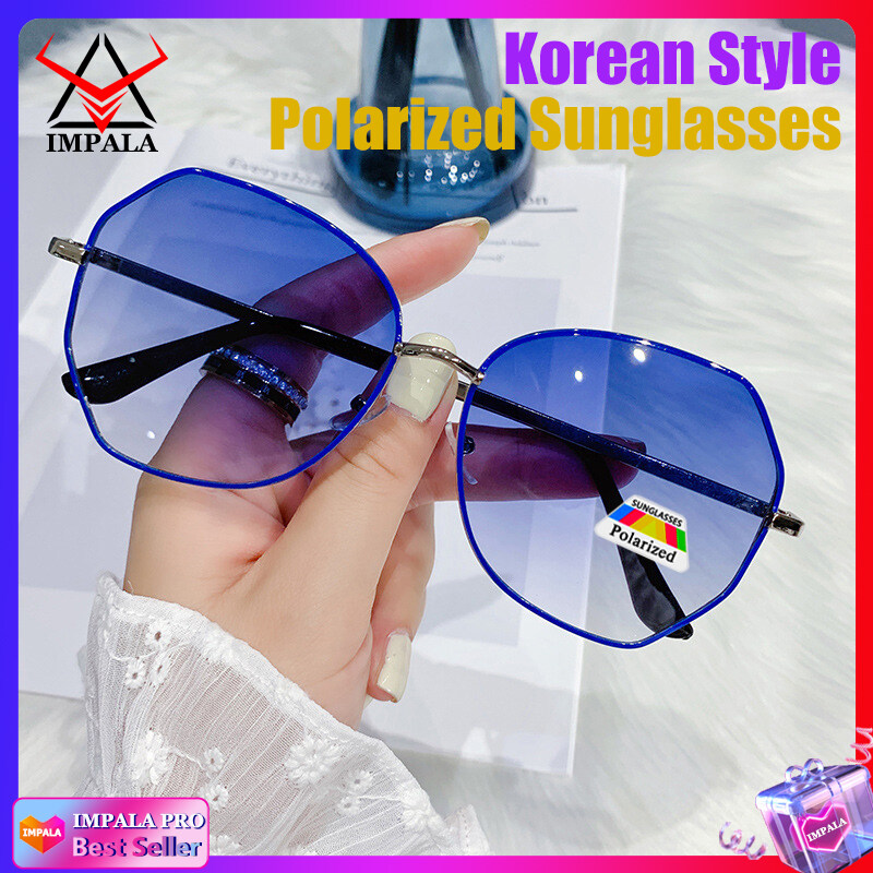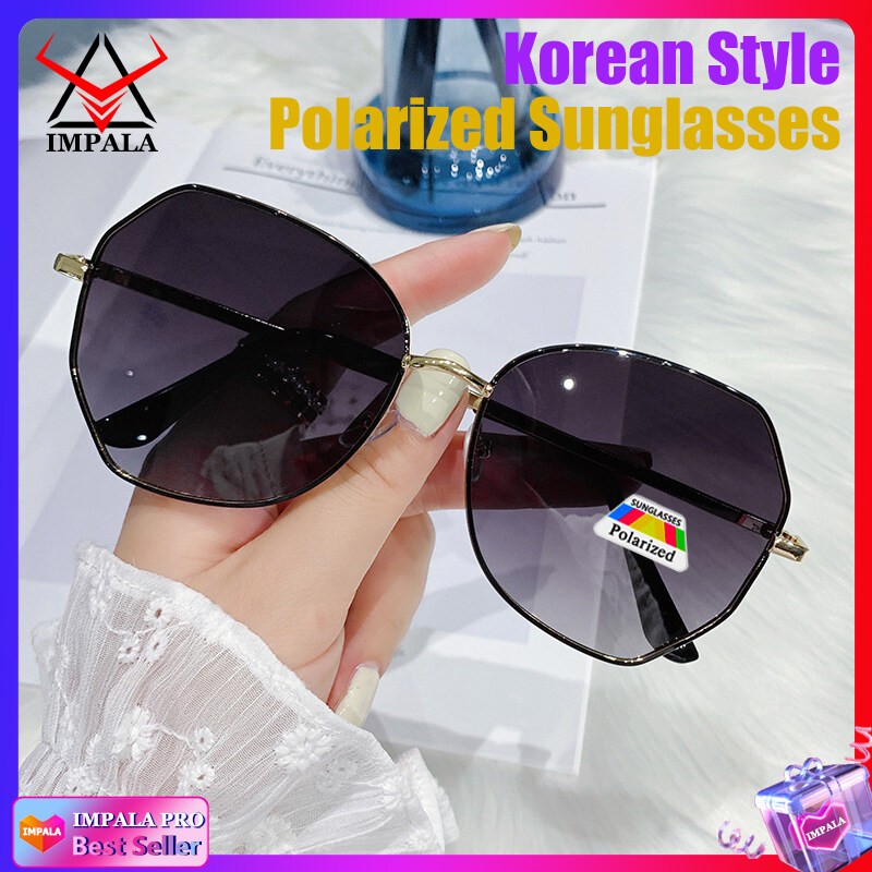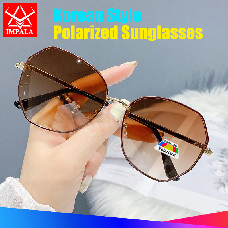 IMPALA PG1638W Fashion Sunglasses for Women Korean Style Polarized Sunglasses Anti Glare UV Protection Driving Eyewear Resin HD Lens Metal Frame Lady Sun Glasses