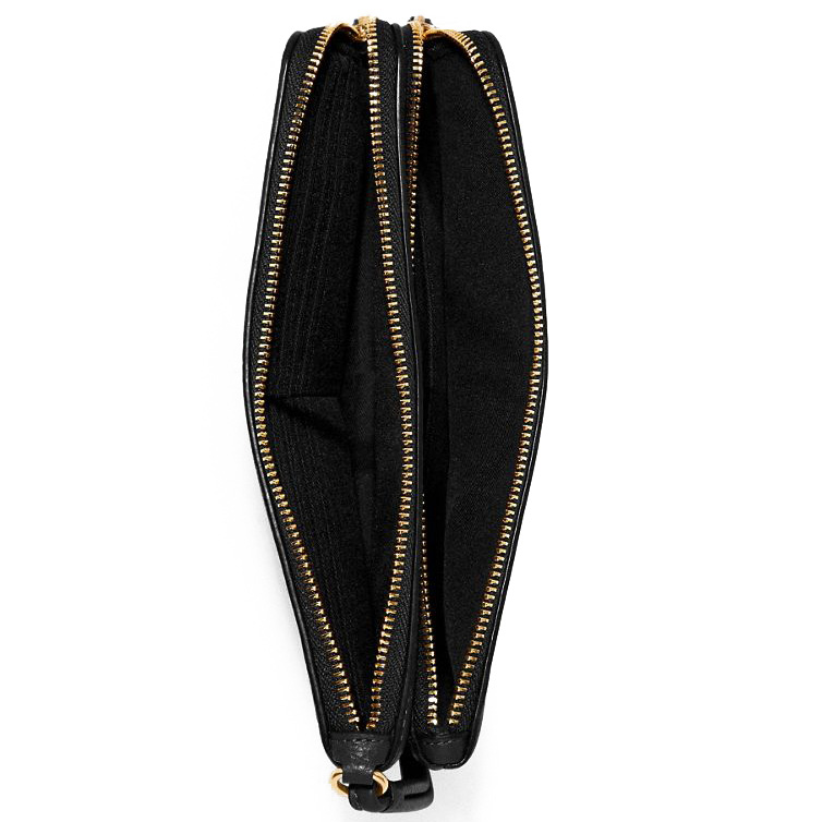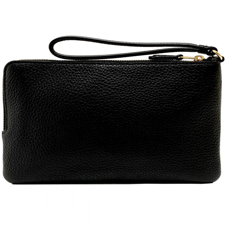Coach Wristlet In Gift Box Large Wristlet Pebbled Leather Double Zip Wallet Black # C5610