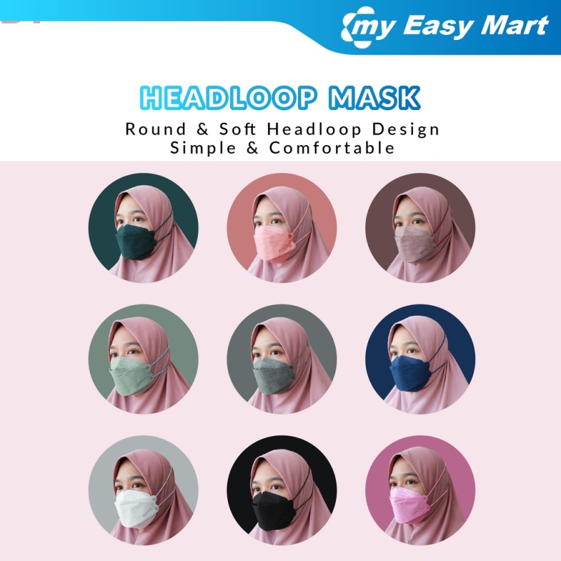 【Hijab】14Colors 50PCS KF94 Headloop Hijab Korean Topeng Muka Headloop 4Ply High Quality FaceMask Topeng Muka Tudung Kpop Kdrama Protection Korea Respiratory Products Cover Prevent Influenza and Antiba
