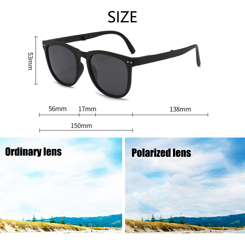 IMPALA PG1645Y Fashion Korean Style Polarized Foldable Sunglasses for Women HD Lens Sun Glasses with Cute Round Glasses Case Anti Glare UV400 Protective Sun Glasses