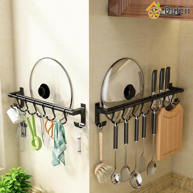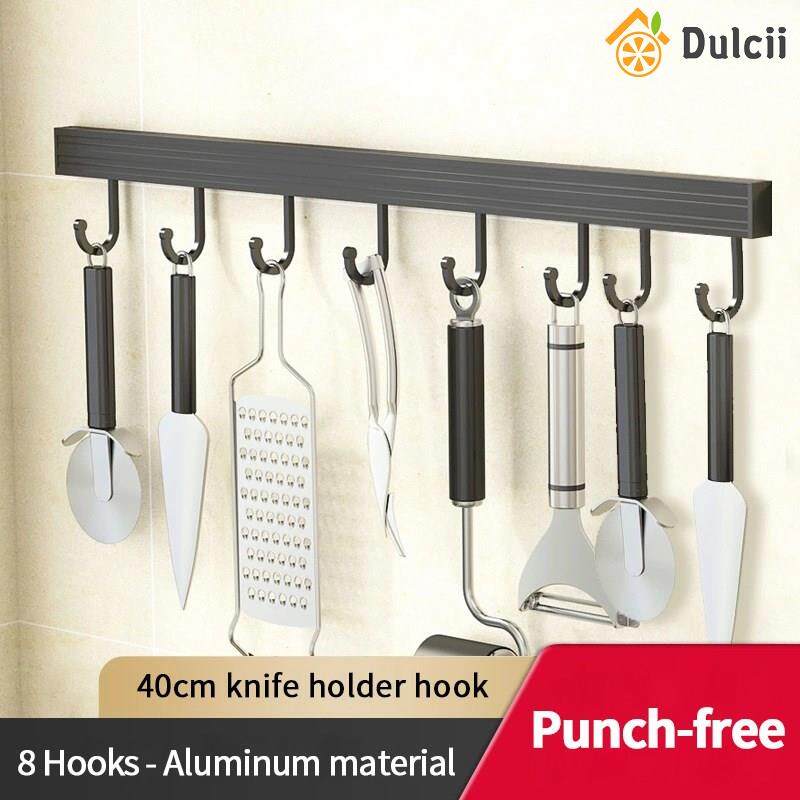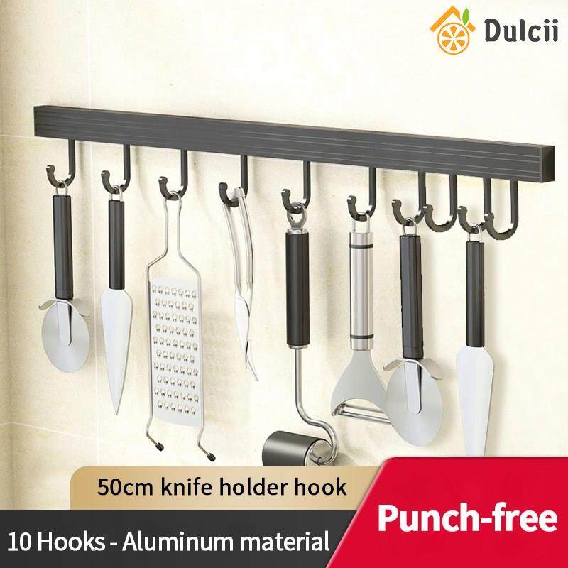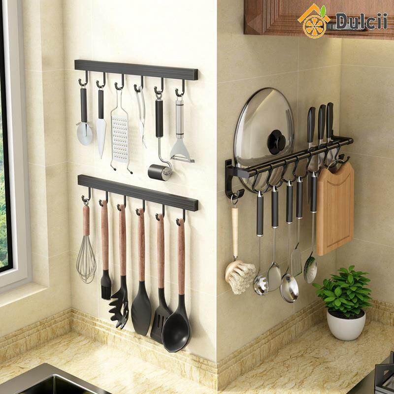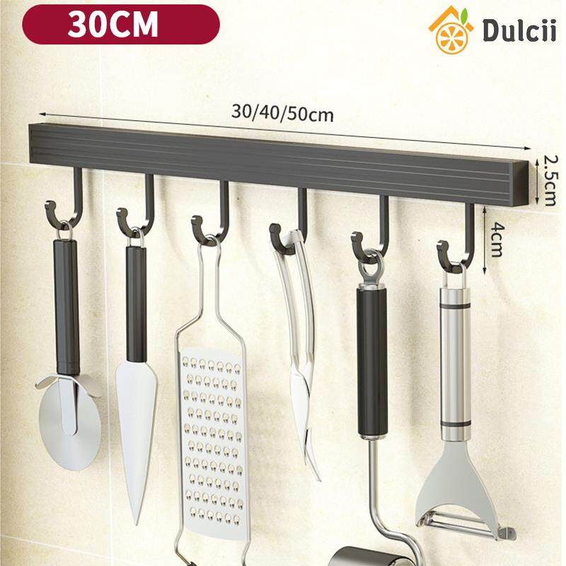 Dulcii 1PCS No Drilling Space Aluminium Kitchen Hooks Rack Multifunction Wall Mount Kitchen Shelf Utensil Holder With Hooks Mug Storage Kitchen Tools Holder Wall Mounted Kitchen Organizer