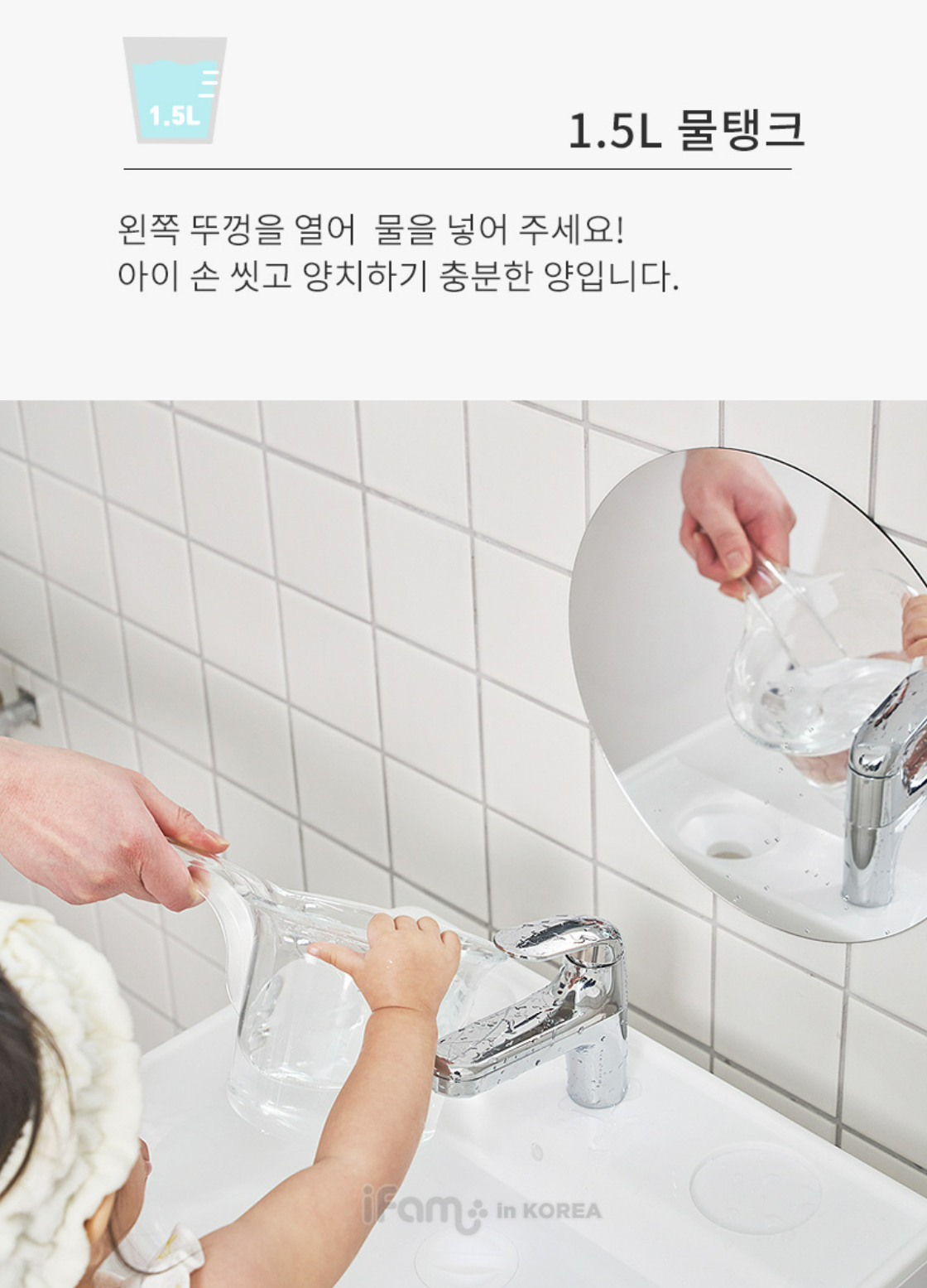 1. Pour in 1.5L water into the water tank (Water tank is detachable from beneath for a thorough wash)
