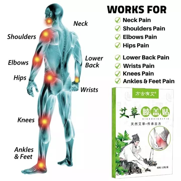 12pcs=3bags Cervical and Lumbar Treatment Pain Relief Patch Wormwood Lumbar Spine Stickers Knee Patch Sakit Sa Tuhod Reliever Arthritis Rheumatoid Plaster Patch Pad Sticker Self-heating Paste Relieve