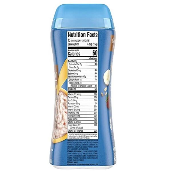 Whole wheat flour, whole oat flour, sugar, rice flour, banana flakes, oat flour, strawberry flavored bits (cornstarch, strawberry puree, strawberry juice concentrate), dried apples, whole grain rye flour, pearled barley flour, potassium phosphate, natural apple flavor, red beet juice powder (color).Vitamins And Minerals: Calcium carbonate, magnesium oxide, vitamin C (ascorbic acid), iron (electrolytic), zinc sulfate, niacinamide, vitamin E (alpha tocopheryl acetate), vitamin B1 (thiamine mononitrate), vitamin B2 (riboflavin), vitamin A palmitate, vitamin B6 (pyridoxine hydrochloride), folic acid, vitamin D3, vitamin B12.