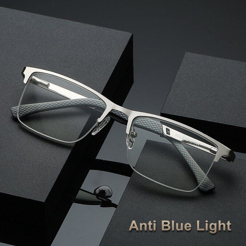+0.5 to +6.0 Business Reading Glasses Men Metal Optical Frame Lens Anti Blue Light Presbyopia Glasses With Grade