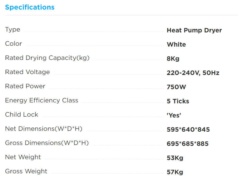 (Bulky) MIDEA MDK888HP WHITE 8KG FRONT LOAD HEAT PUMP DRYER