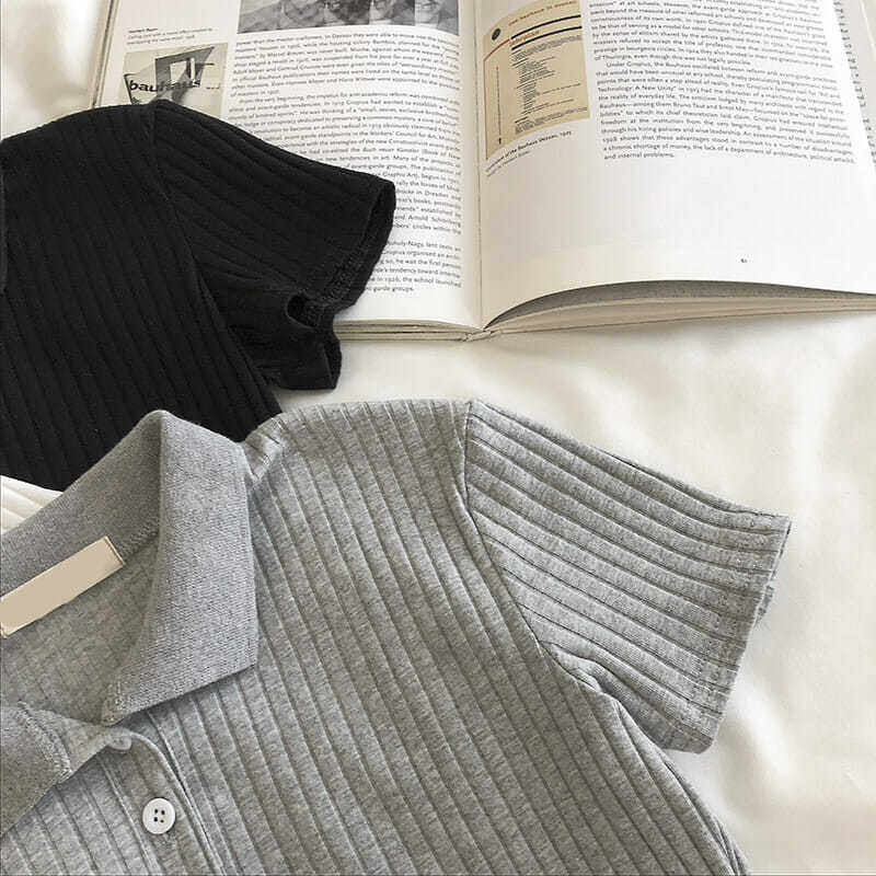 Polo shirt for women korean fever style short sleeve skinny knit crop top tshirt