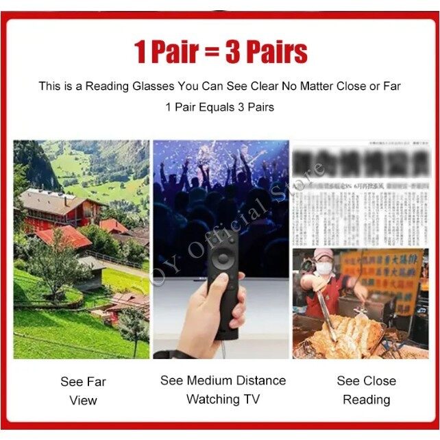 Suitable Gender: Men and Women Weight: About 17g (Lens Excluded) Temples: Metal + PC Lens: Resin Features: Fashionable Multi-Focal Reading Glasses