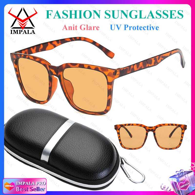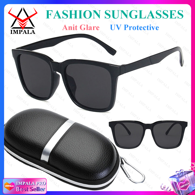 IMPALA QT1612L Fashion Sunglasses for Men and Women Anti Glare Sun Glasses UV400 Protective Block Sunshine Driving Traveling Eyewear with Buckle Box