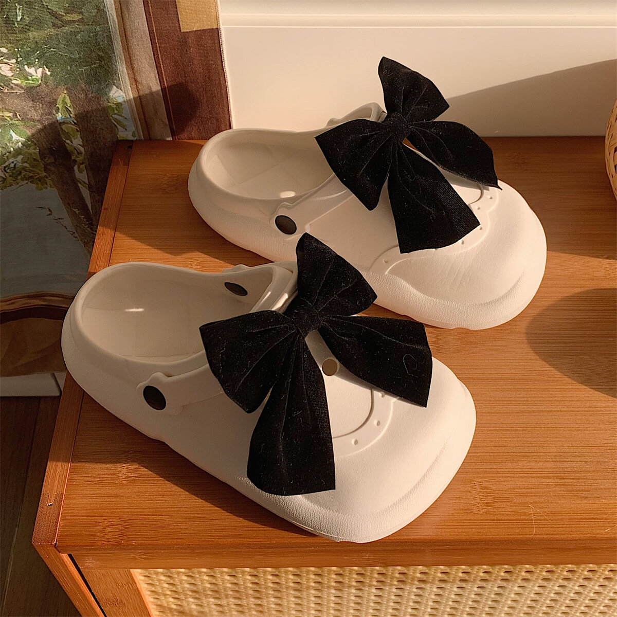 Thin Strip Retro Cute Bow Women's Shoes Lolita Outer Wear Closed Toe Platform Sandals Summer Porous Shoes