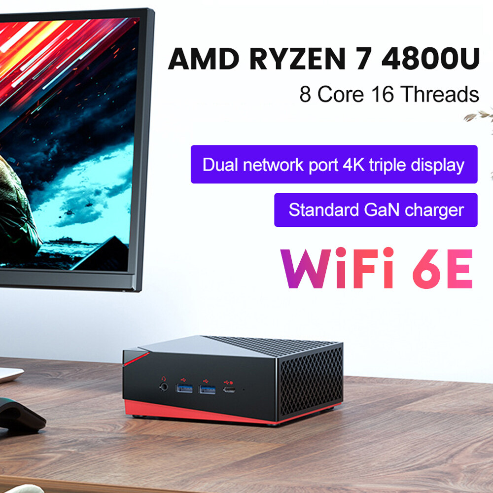 TOPTON AMD Gaming Mini PC Windows 11 Ryzen 7 4800U Octa Core NVMe SSD Dual LAN Portable Desktop Mini Computer 3x4K HTPC WiFi6