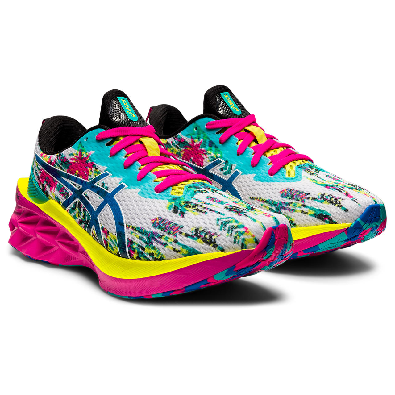This colorway is inspired by the heritage of our traditionally vibrant running shoes. It features bright tones and energized graphics that are complemented with various coastal caricatures.