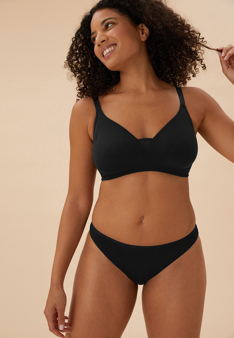 With their soft cotton-blend fabric and feminine lace detailing, these bras combine prettiness and practicality. Their full-cup shape is unpadded and non-wired for a comfortable wear and a natural outline. Handy three-pack is ideal for stocking up. M&S Collection: versatile styles in modern shapes with unique and playful details.