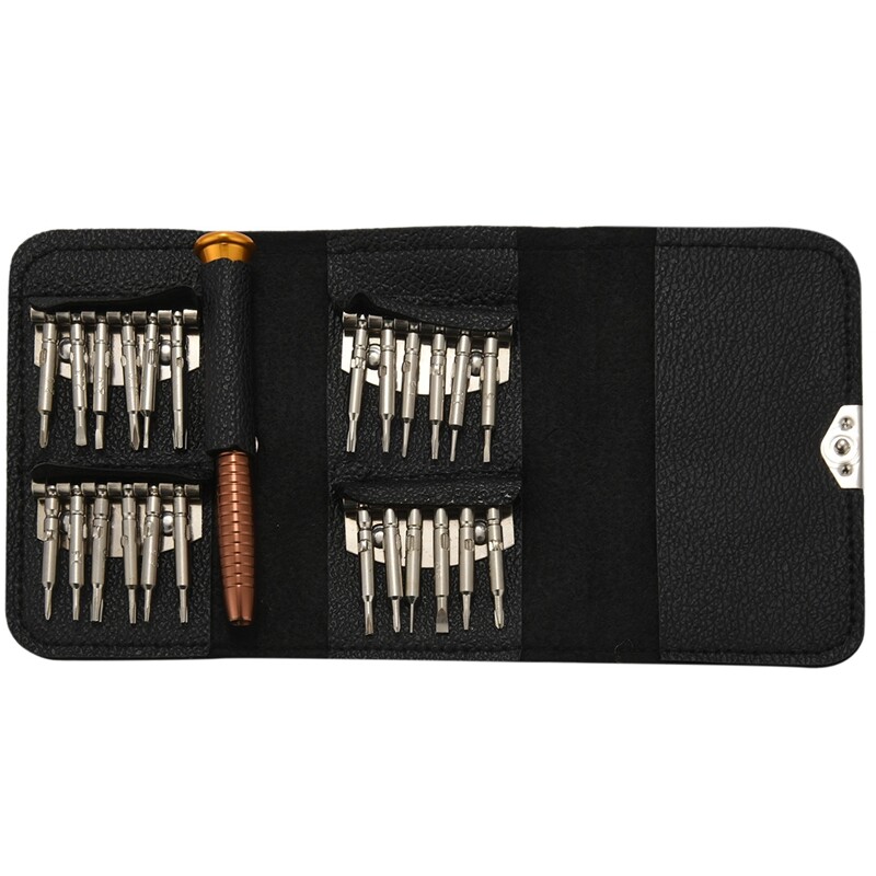 EASY TO IDENTIFY:The screwdriver set in this eyeglass repair kit are well packed in a leather wallet case that are designed with clamping holders to keep the batch heads with sizes on neatly arranged display. The tiny screws in this eyeglasses repair kit are placed in a plastic container boxes with grids that printed with sizes information on the cover for convenient identify