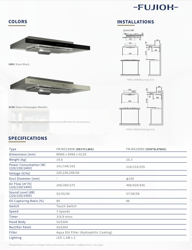FUJIOH FR-MS1990R 90CM SLIMLINE HOOD WITH TOUCH CONTROL + RINNAI RB-2GI 2 BURNER INNER FLAME HOB WITH SAFETY VALVE