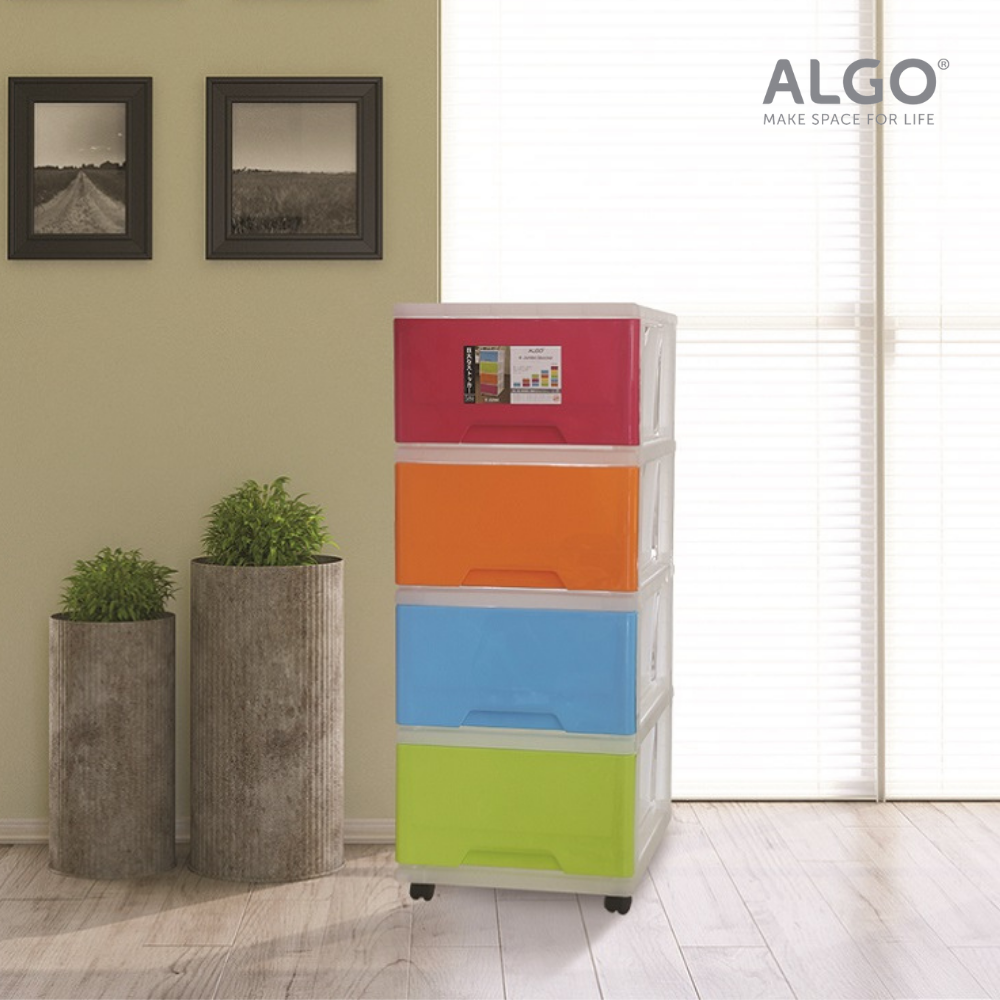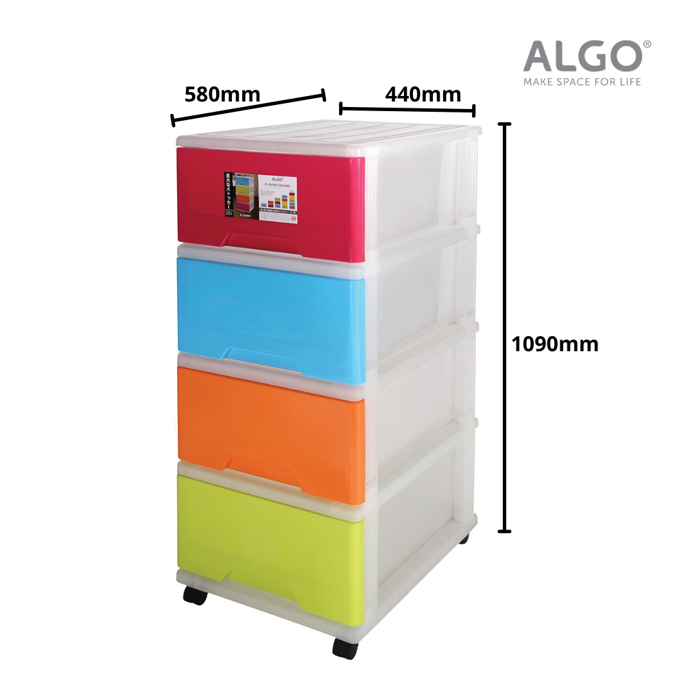 [SG Stock] Algo 4 Tier Jumbo Storage Stocker Home Organizer Drawer with Wheels