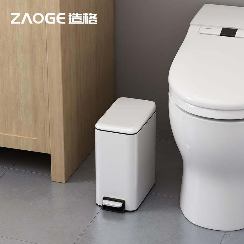 Rectangular Narrow-Slit Stainless Steel Trash Can, Household Toilet with Lid, Toilet Pedal Type, Small Foot with Lid