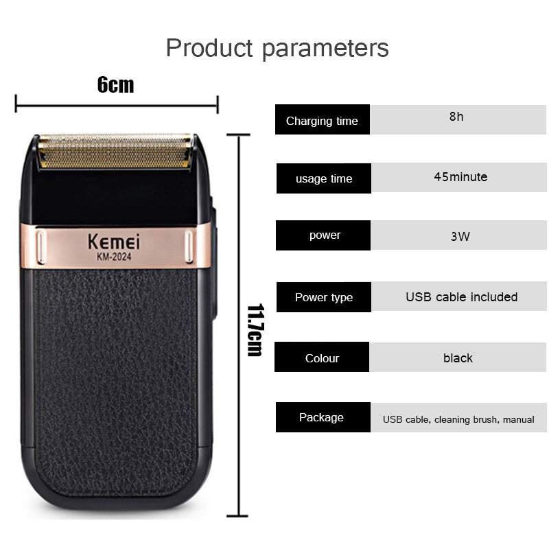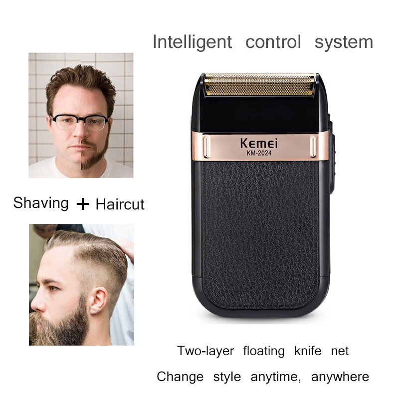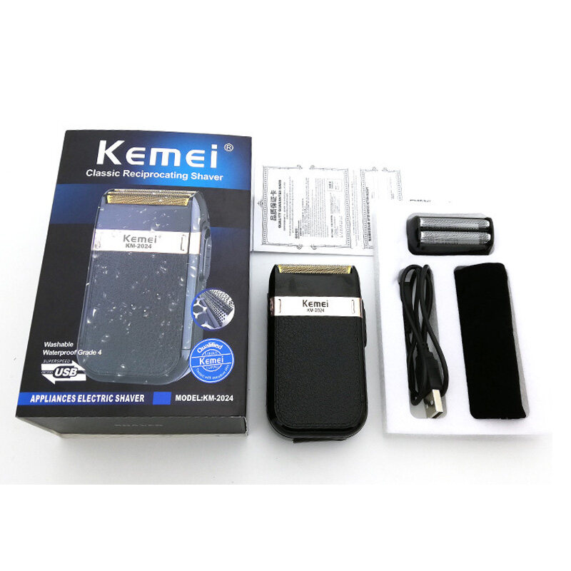 KM-2024 Men's Razor Wet and Dry Beard Trimmer Double Blade Alternative Electric Shaver Hair Clipper USB Charge