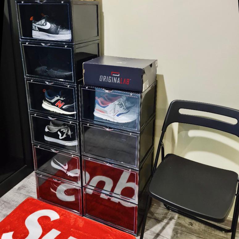 ORIGINALAB Premium Shoe Boxes keep your shoes/sneakers organized and neat. Gives you a good overall view of your shoe collection, making it simple to grab them at a glance.