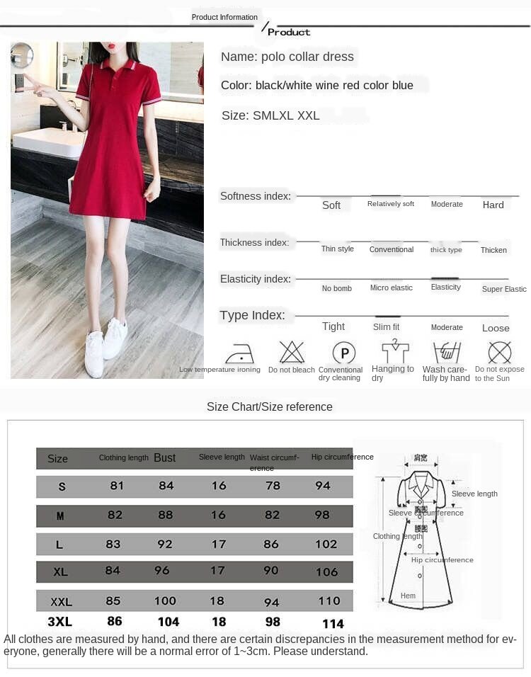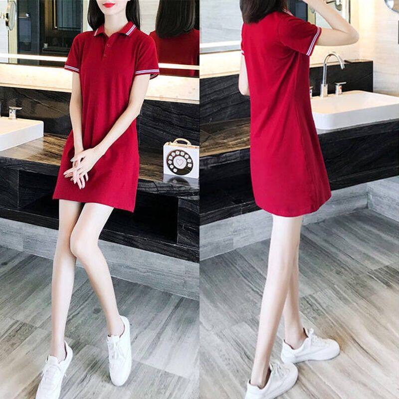 2020 Summer New Sports Casual Short-Sleeved L Polo Shirt Collar Long T Dress