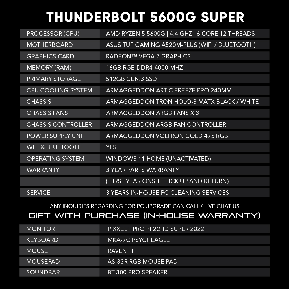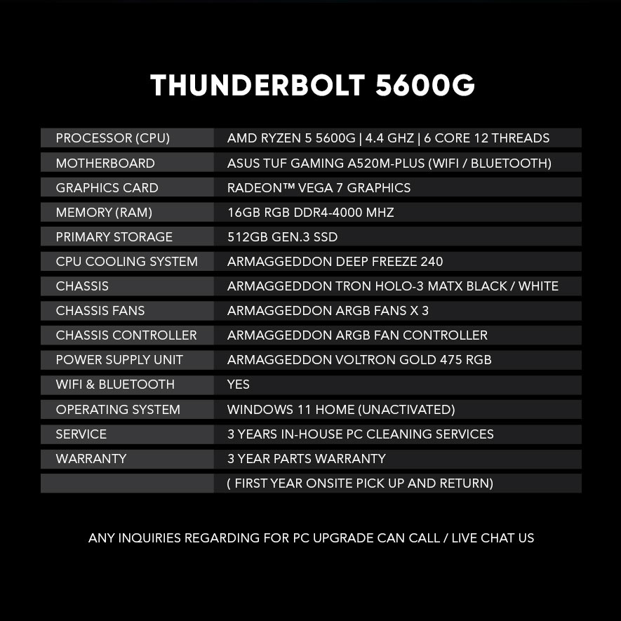 Armaggeddon Thunderbolt 5600G Super Full Set Entry Gaming Desktop / Thunderbolt 5600G Gaming Desktop
