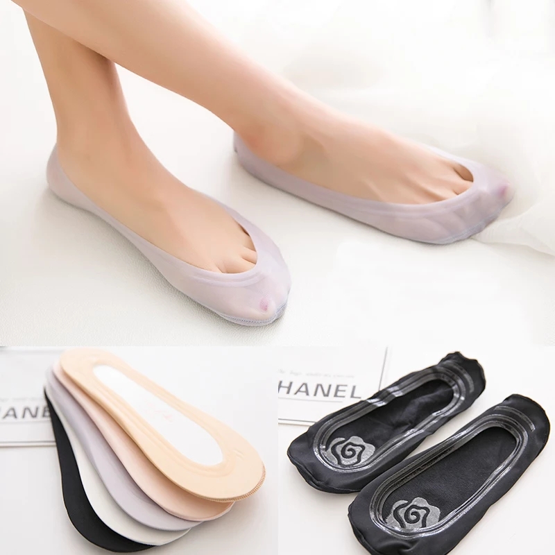 (6 Pairs)Woman Ice Silk invisible Socks Silicone Anti-Slip Seamless Casual Outdoor Socks