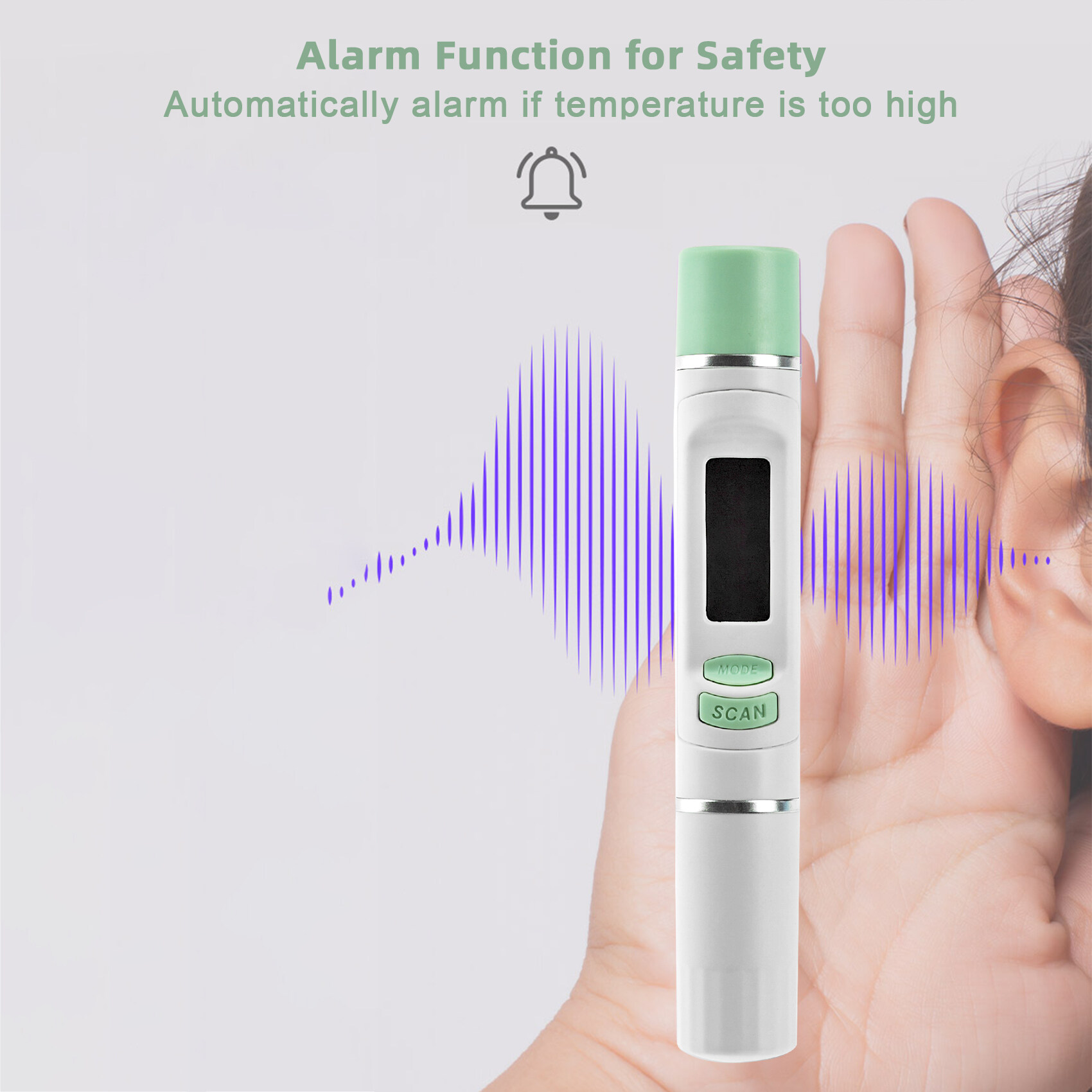 Intelligent Temperature Warning: When <32°C/89.6°F, it displays "Lo". When >43°C/109.4°F, it displays "Hi". At the same time, it rings “Bi Bi” for warning.
